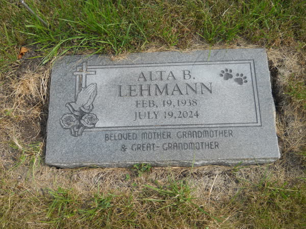 Alta Betty Lehmann, age 86, passed away on Friday, July 19, 2024, in Horace, ND at her daughter’s home surrounded by Love, under the care of Hospice. A funeral service to celebrate Alta’s life will be held at Vertin-Munson Funeral Home in Wahpeton, ND on Thursday, July 25, 2024, at 11:00 am, with visitation one hour prior to the service. Randy Spahr will officiate. Burial will be in Fairview Cemetery in Wahpeton following the service, with lunch to follow at the funeral home. Arrangements have been entrusted to Vertin-Munson Funeral Home.