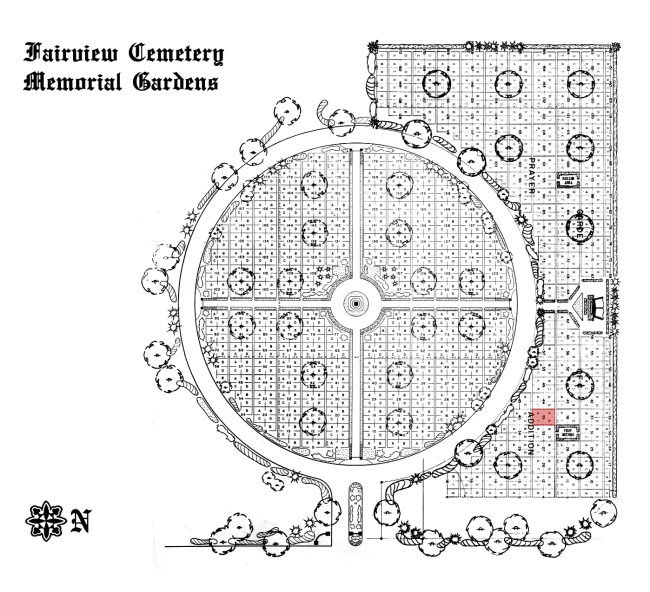 The Garden of Prayer is located in the Memorial Gardens, which comprises the northern half of the cemetery.