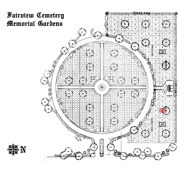 The Garden of Prayer is located in the Memorial Gardens, which comprises the northern half of the cemetery.